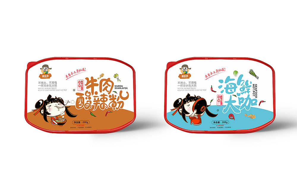 設計理念:自熱火鍋外包裝標簽設計除正面創意設計以外,其主要展示版面內容如下:1.名稱;2、凈含量;3、配料表;4、制造商;5、地址;6、網址;7、電話;8、食品生產許可證號;9、產品標準號;10、生產日期、批號;11、保質期;12、貯存條件;13、食用方法;14、食品專用發熱包;16、營養標簽;